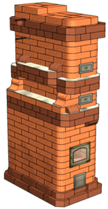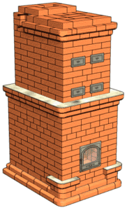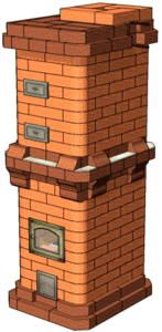 Для отопления 2-х этажных частных домов или коттеджей, в распоряжении одного владельца, применяют двухъярусные печи (проекты отопительных печей №93 и №94). На каждом этаже расположен свой отопительный прибор. На разных этажах печи могут быть разных видов, в зависимости от назначения помещения.